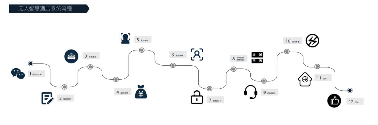 智慧酒店系统采用AI人工智能服务取代人工服务,微信平台取代人工前台,身份证取代房卡、房内无卡取电、语音智控房间设备及呼叫服务